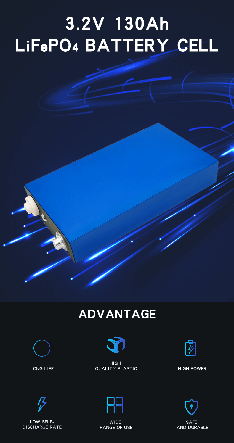 ఈ UL సర్టిఫైడ్ 3.2V 130Ah LiFePO4 బ్యాటరీ సెల్ కింది ప్రయోజనాలను కలిగి ఉంది: