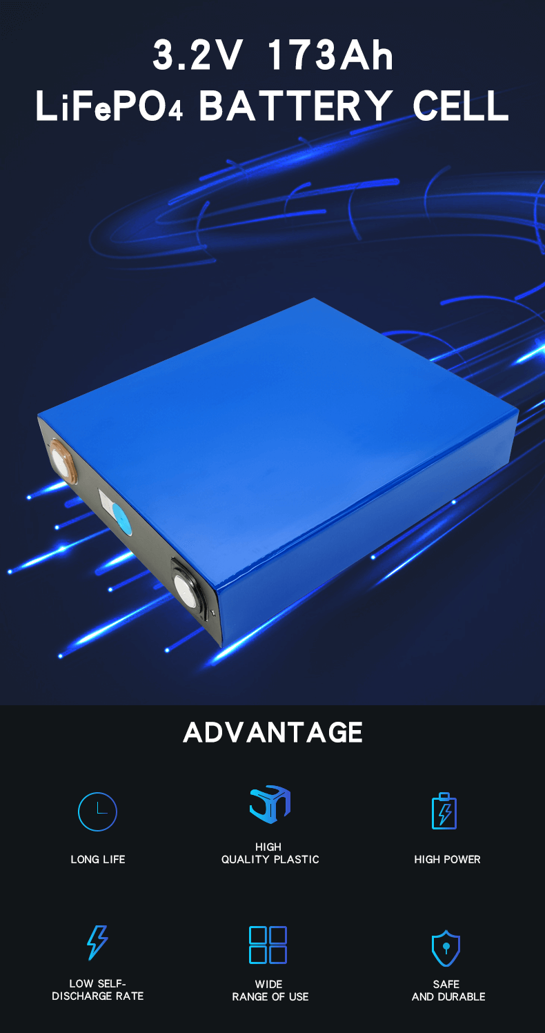 ఈ UL సర్టిఫైడ్ 3.2V 173Ah LiFePO4 బ్యాటరీ సెల్ కింది ప్రయోజనాలను కలిగి ఉంది: