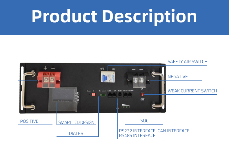 Conditions సాధారణ పరిస్థితులలో లిథియం ఐరన్ ఫాస్ఫేట్ సెల్, ఉన్నతమైన భద్రత, వేలాది చక్రాలు, 100% DOD సాంకేతిక పరిజ్ఞానాన్ని ఉపయోగించడం.