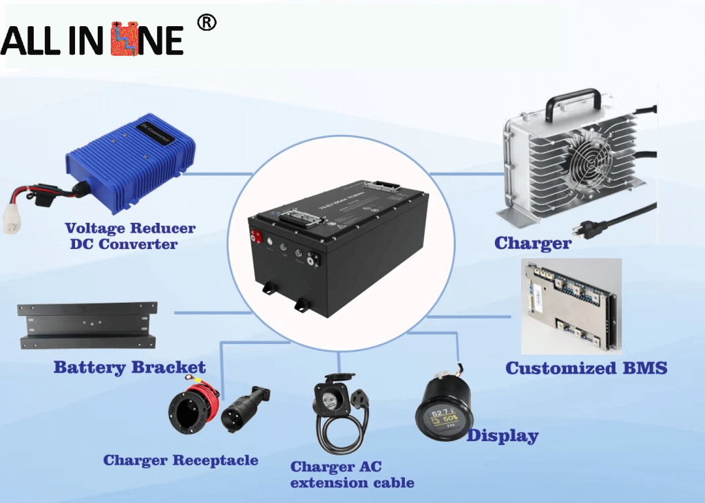 7) ఛార్జర్, వోల్టేజ్ రిడ్యూసర్, బ్రాకెట్ మొదలైన పూర్తి సిస్టమ్ పరిష్కారాన్ని మేము అందించగలము.