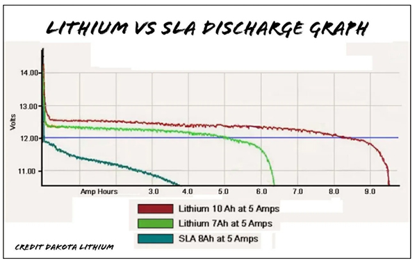 లిథియం vs SLA ఉత్సర్గ గ్రాఫ్
