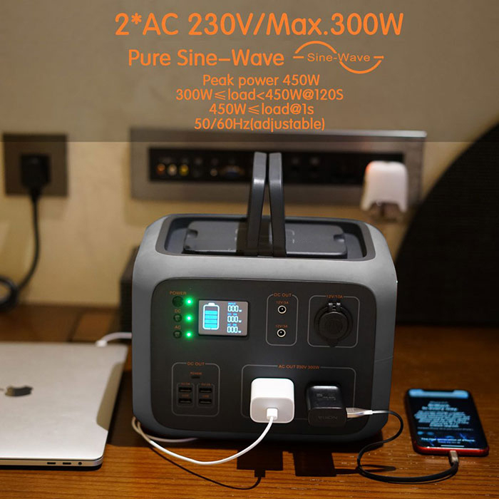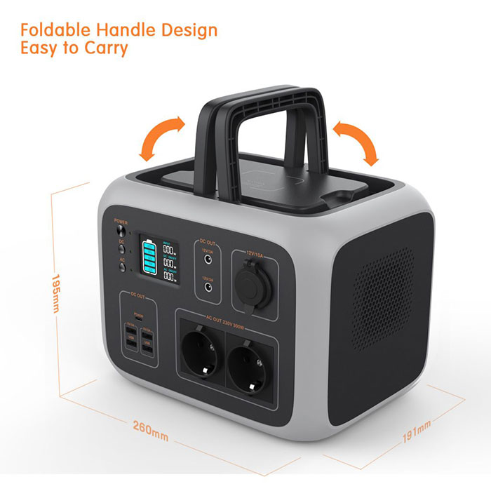W ట్డోర్ క్యాంపింగ్ ప్రయాణం కోసం 300W DC / AC ఇన్వర్టర్, DC / AC / USB అవుట్పుట్లతో 500Wh పోర్టబుల్ జనరేటర్ పవర్ స్టేషన్ విద్యుత్ సరఫరా