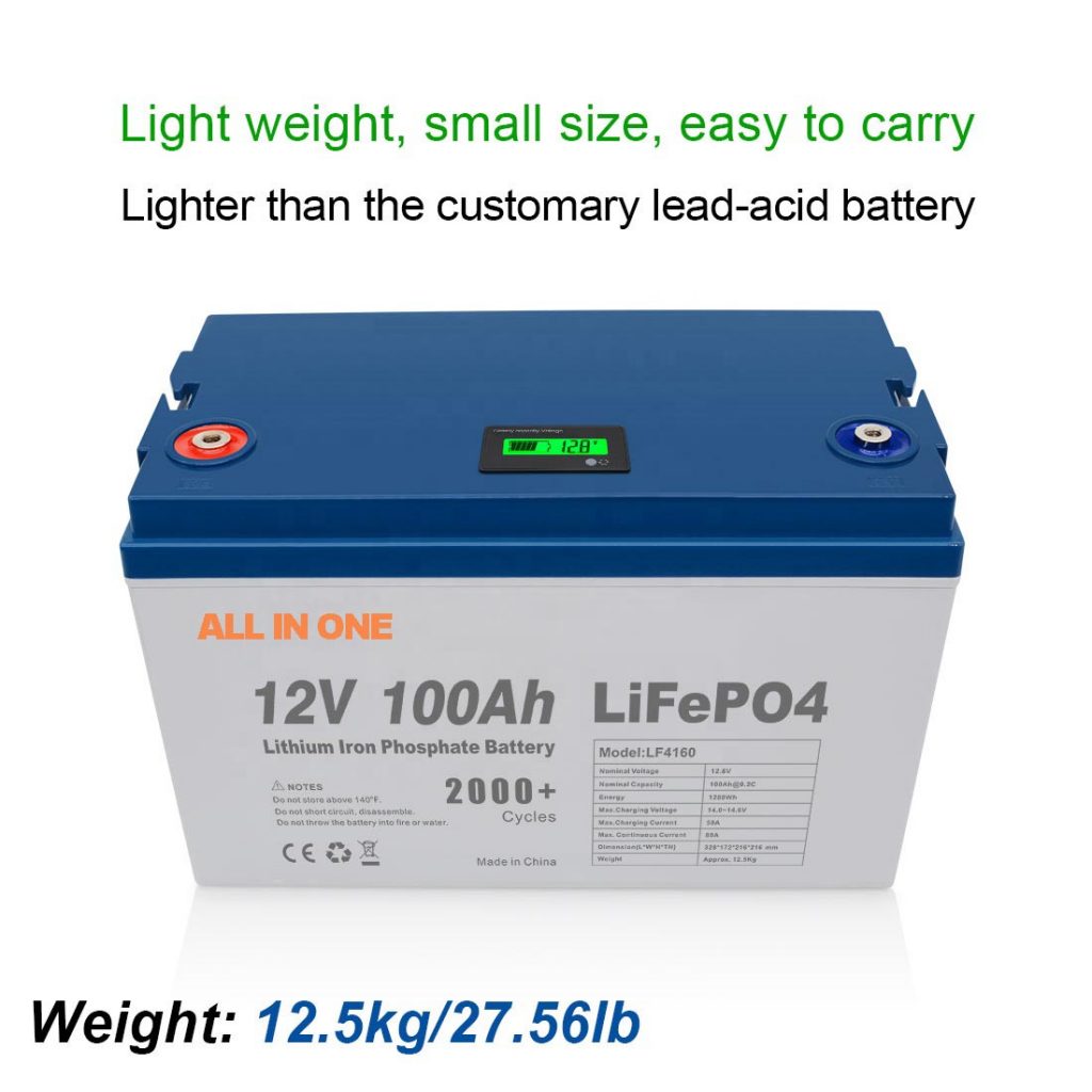 Weight తేలికైన బరువు: పోల్చదగిన లీడ్ యాసిడ్ బ్యాటరీ బరువులో 40% ~ 50%.