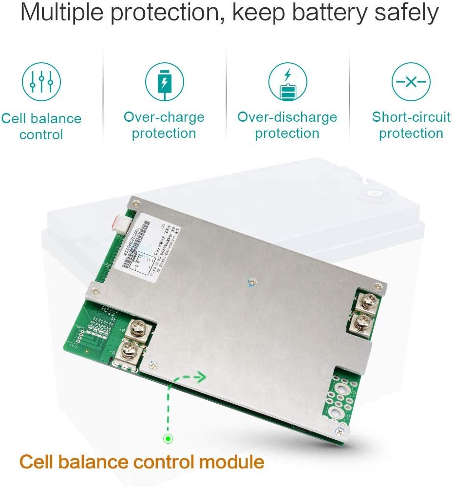 Over ఓవర్-ఛార్జ్, ఓవర్ డిశ్చార్జ్, కరెంట్ మరియు ఓవర్ టెంపరేచర్ కోసం అంతర్నిర్మిత ఆటోమేటిక్ ప్రొటెక్షన్.