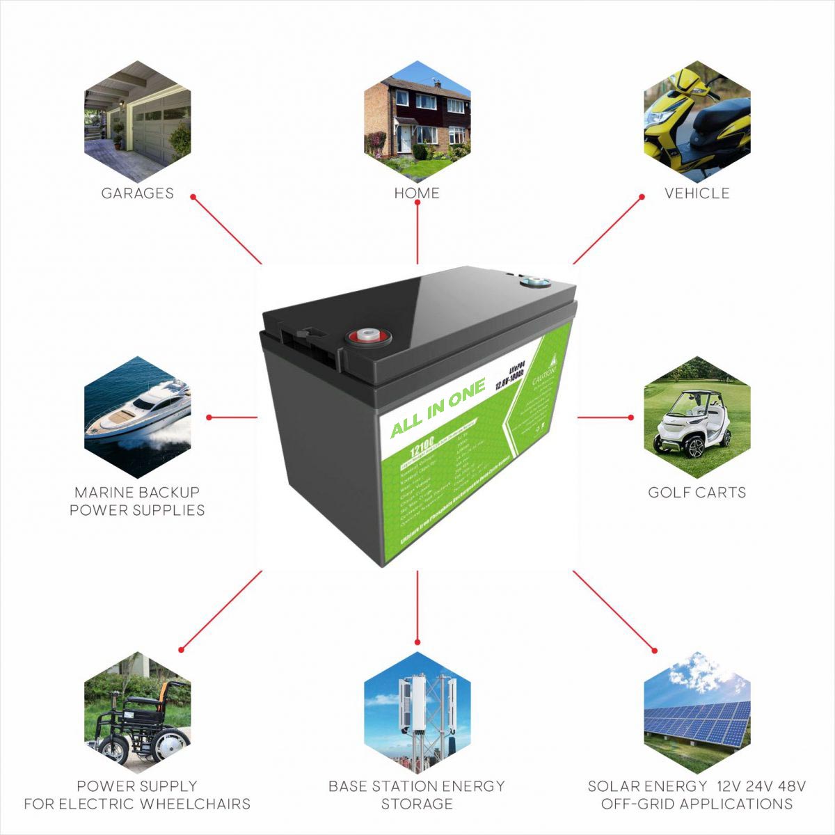 ఇ-కార్, ఇ-బస్, గోల్ఫ్ ట్రాలర్ / కార్, ఇ-బైక్, స్కూటర్, ఆర్వి, ఎజివి, మెరైన్, టూరిస్ట్ కార్, కారవాన్, వీల్ చైర్, ఇ-ట్రక్, ఇ-స్వీపర్, ఫ్లోర్ క్లీనర్, ఇ-వాకర్ మొదలైనవి.