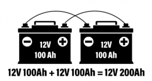 దిగువ ఉదాహరణలో, మాకు రెండు 12V బ్యాటరీలు ఉన్నాయి, కానీ మీరు AM-hours 200 Ah కు పెరగడాన్ని చూస్తారు.